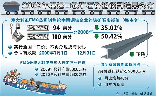图表:2009年度进口铁矿石价格谈判结果公布 新华社发