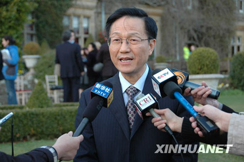 接受共和国部长访谈的财政部部长谢旭人用“为国理财,为民服务”8个字诠释了财政部门的重任。这是2009年3月14日,财政部部长谢旭人在英国接受媒体采访。新华社记者 何大隆 摄