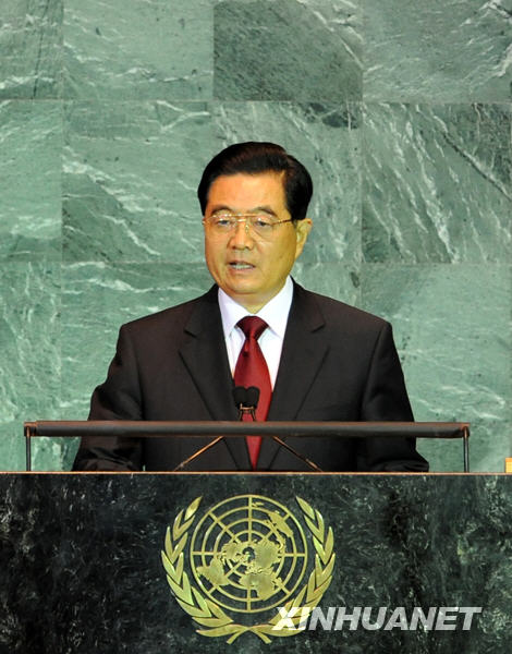 9月22日,联合国气候变化峰会在纽约联合国总部举行,国家主席胡锦涛出席峰会开幕式。新华社记者 申宏 摄