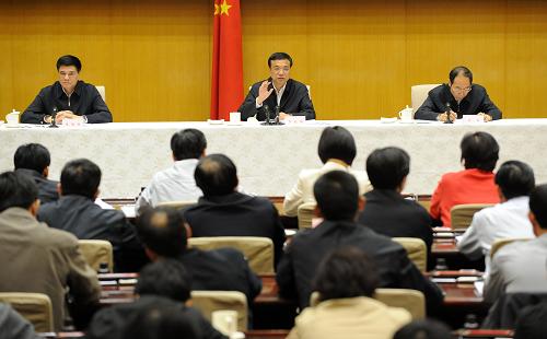 10月9日,中共中央政治局常委、国务院副总理李克强在北京出席全国粮食清仓查库工作总结电视电话会议并讲话。新华社记者 刘建生 摄