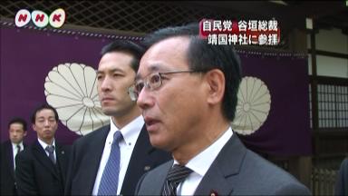 日本自民党新总裁谷垣祯一参拜靖国神社(截图)