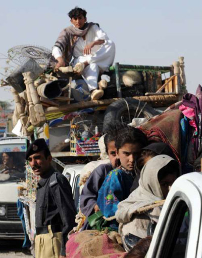 战火使得大量巴基斯坦百姓被迫撤离。继军方早前宣布将发动进攻之后,近月来已有约15万平民逃离家园,实际人数可能更多,但该地区可能还滞留着约35万人。当局说,未来数天内可能会有多达20万人逃离该地区。