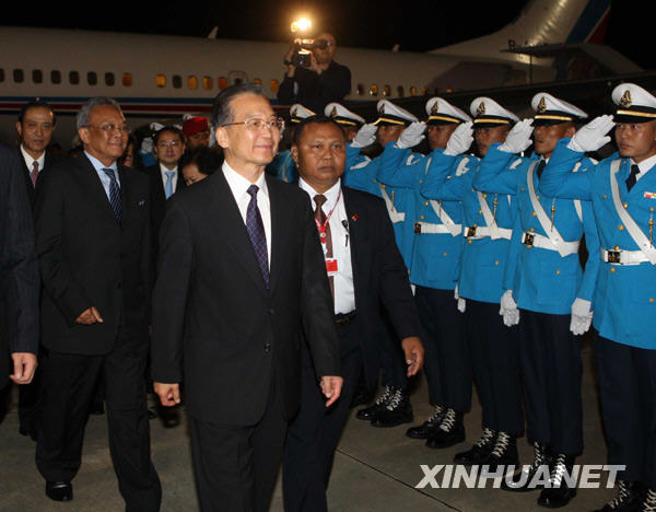 10月23日晚,应泰国总理阿披实邀请,国务院总理温家宝乘专机抵达泰国华欣,出席东亚领导人系列会议。新华社记者 刘卫兵 摄
