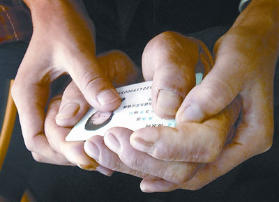 陈及时的家人摸着他的身份 证,不敢相信他已经离去
