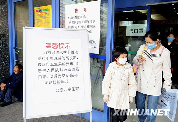 这是10月31日拍摄的北京儿童医院门诊楼前的提示牌。新华社记者饶爱民摄