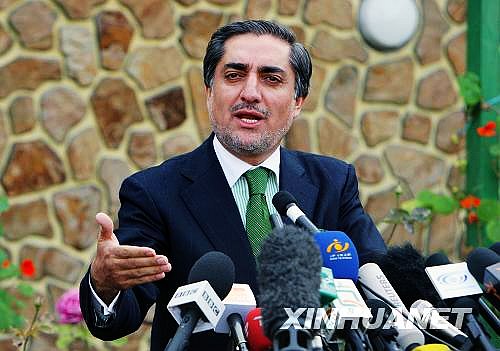11月1日,阿富汗总统选举的两名候选人之一阿卜杜拉在喀布尔的官邸举行记者招待会。当天,阿卜杜拉宣布,由于选举公正性毫无保障,他将不参加定于7日举行的总统选举第二轮投票。新华社发(扎比摄)