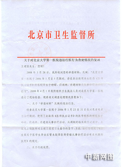 中新网北京11月4日电 媒体报道由于北京大学第一医院非法行医,造成北京大学医学教授熊卓为惨死于手术室,引起各界广泛关注。不过北大第一医院回应指出,有关该院“非法行医”的报道,内容失实、断章取义。
