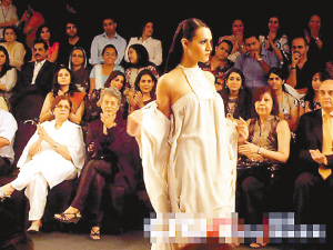 但是在此次时装周上,观众甚至可以看到模特们的腹部、双肩、背部、乳沟或者膝盖以上的大腿。这些模特都是巴基斯坦本地人,她们身穿多姿多彩的华美衣服,展示性感身材,露出双肩和肚脐的举动让保守的巴基斯坦人震惊。在400多名观众中,还有一些女性戴着面纱。