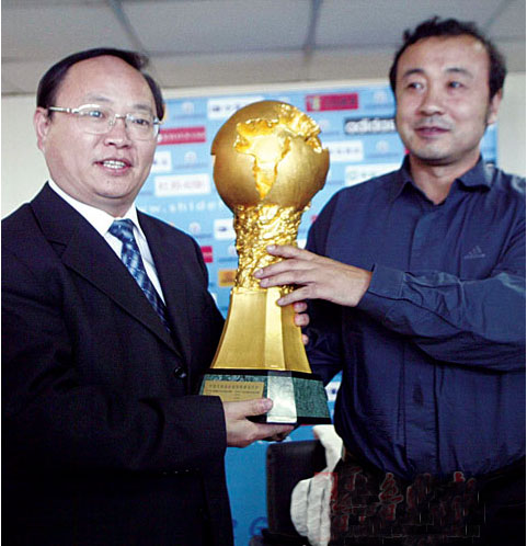 范广鸣曾颁发中超奖杯 图片来源:体坛周报
