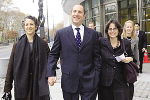 马修·坦丁(左)和拉尔夫-乔菲兴高采烈走出法庭。