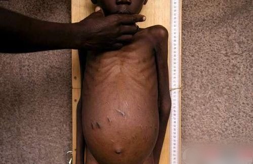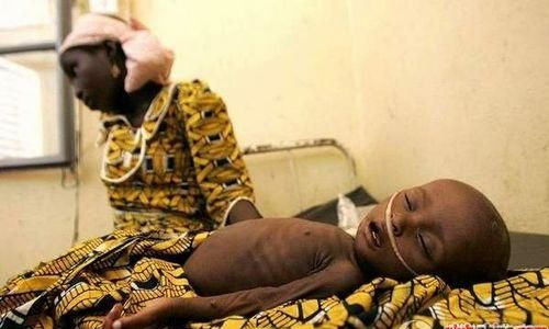一名在医院接受治疗的严重营养不良的乌干达男孩。
