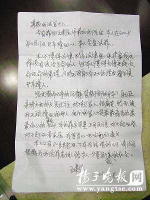 王建强的悔过书。