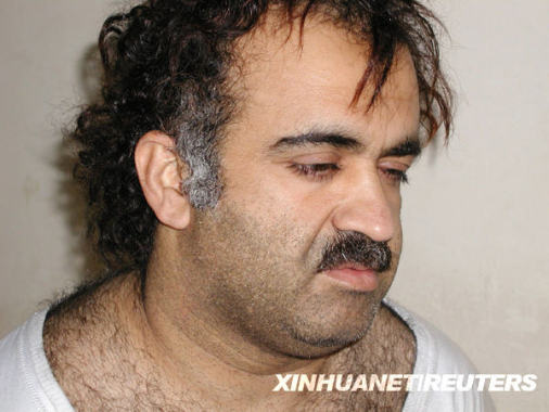 11月13日,美国司法部长霍尔德在首都华盛顿举行的新闻发布会上宣布,5名参与策划实施“9·11”恐怖袭击事件的嫌疑人将被送往纽约一家联邦民事法庭受审,其中包括“9·11”事件主谋哈立德·谢赫·穆罕默德。这5名恐怖袭击嫌疑人目前被关押在关塔那摩基地监狱。这是2003年3月1日拍摄的“9·11”事件主谋哈立德·谢赫·穆罕默德的资料照片。新华社/路透