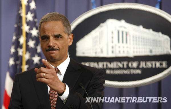 11月13日,美国司法部长霍尔德在首都华盛顿举行的新闻发布会上接受记者提问。当日,霍尔德宣布,5名参与策划实施“9·11”恐怖袭击事件的嫌疑人将被送往纽约一家联邦民事法庭受审,其中包括“9·11”事件主谋哈立德·谢赫·穆罕默德。这5名恐怖袭击嫌疑人目前被关押在关塔那摩基地监狱。新华社/路透