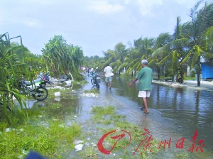 “天黑后千万别出来跑步,因为一不小心就会跑到海里去,”记者在闲逛时竟然碰到了一个来自广东的老乡老罗,他警告记者,“图瓦卢太小、地形又太平坦,涨潮时很多地方都会被海水给吞没,甚至包括岛中央的马路。”他还劝告记者别穿皮鞋,大潮时随便一个海浪扑过来,就会直接冲过整个海岛流到另外一边,整个人都会被海水打湿。