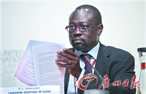 “77国集团加中国”2009年主席、苏丹常驻联合国副代表手持“丹麦文本”,代表77国集团宣布反对”。