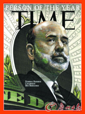 广州日报讯 美国《时代》杂志16日宣布,美联储主席本·伯南克当选为《时代》2009年年度人物。苹果公司总裁史蒂夫·乔布斯虽然进入由7人组成的最终入围名单,但最终无缘该杂志年度人物奖项。