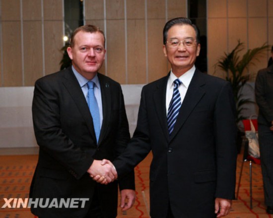 12月17日,中国国务院总理温家宝在哥本哈根会见丹麦首相拉斯穆森。新华社记者 庞兴雷