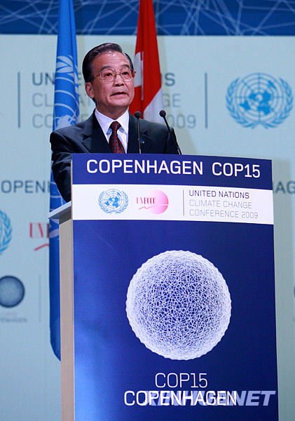 12月18日,中国国务院总理温家宝在哥本哈根出席联合国气候变化大会领导人会议。这是温家宝在会上发表讲话。新华社记者武巍摄
