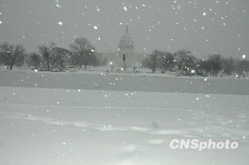 当地时间12月19日,美国东海岸广大地区遭受暴风雪袭击,图为当日大雪纷飞中的美国华盛顿国会山。美国国家气象局预测,包括华盛顿、巴尔的摩、费城和纽约在内的东海岸中部地区积雪将达五十厘米。气象专家称,华盛顿的大雪或许是自一九三二年以来十二月的历史性最大降雪。 中新社发 吴庆才 摄