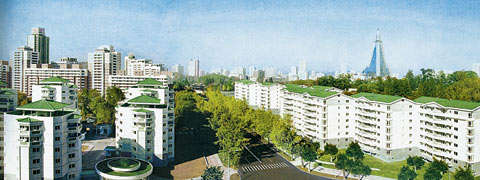 韩联社近日报道说,根据朝鲜领导人金正日的指示,朝鲜计划2012年之前在平壤建10万套住宅,万寿台街重建项目就是其中一环。万寿台街位于平壤中心区,泛指万寿台议事堂(相当于中国的人民大会堂)周边地区。韩联社称,去年7月之前,万寿台街还是上世纪60年代建的5层以下的旧公寓园区(600多户),但最近摇身一变成了6-18层的新型公寓园区(800多户)。虽然住户数量没有大幅增加,但每户的居住面积却扩大到100平方米以上,绿化面积也占到了50%以上。