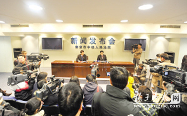 审判一结束,南京市中院就专门召开新闻发布会。裴睿 摄