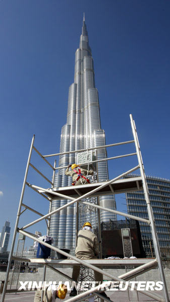 1月3日,工人在阿拉伯联合酋长国迪拜的“迪拜塔”附近工作。新华社/路透