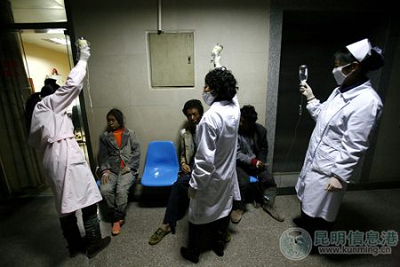 “让开,先让伤员进去!”昨天下午4点左右,昆明市经开人民医院的所有医护人员都动员起来,为伤者辟出一条“生命通道”。从工地上送来的工人不断增多,共有22名。其中包括7名女性和15名男性。其中8名骨折的伤员病情较重,需要第一时间做检查,并以最快速度安排手术。