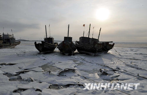 1月14日至18日,记者随国家海洋局预报减灾司司长林山青带队的海冰调查组在渤海沿岸看到,一片片的商船和渔船被冰封在海上,如赤壁联营,蔚为壮观。