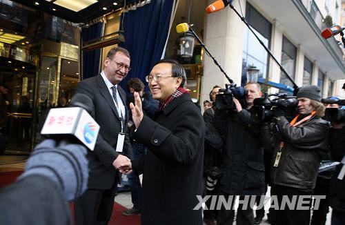 2月5日,中国外交部长杨洁篪(左二)进入德国慕尼黑安全政策会议会场。当日下午,第46届慕尼黑安全政策会议在慕尼黑巴伐利亚庄园酒店开幕。中国外交部长杨洁篪首次出席这一全球高规格的安全政策论坛,并在开幕式上发表重要讲话。 新华社记者罗欢欢摄