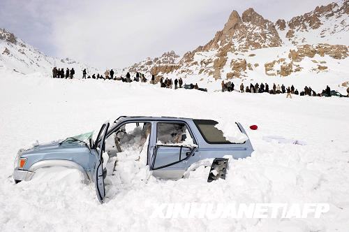 美联社报道,数以吨计冰雪随20多次雪崩倾泻到萨朗山口,堵住道路,埋没数以百计过往车辆。