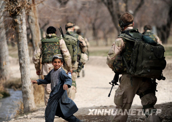 这是2010年1月21日在阿富汗南部乌鲁兹甘省拍摄的一个当地男孩回头看荷兰士兵巡逻。荷兰首相巴尔克嫩德2月20日宣布,由于在阿富汗撤军问题上无法达成一致,执政联盟中第二大党工党将退出执政联盟,致使执政联盟垮台。 新华社/法新