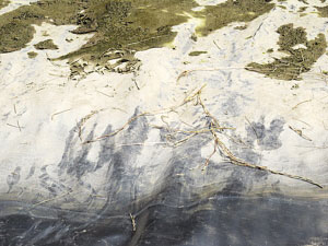 事发水塘水抽干后,几道挣扎的痕迹清晰可见。