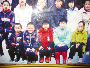 全家福经过精心装裱,5个孩子蹲在最前排,笑靥如花。