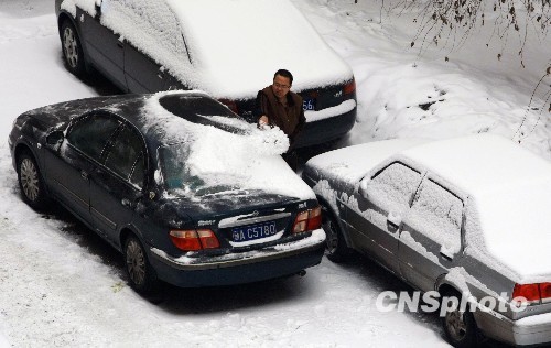 2月23日,新疆乌鲁木齐市降下小雪,一位市民清理车顶的积雪准备出行。据新疆气象台介绍,新疆奎屯、乌苏等地遭受暴雪侵袭,积雪厚度已达50至60厘米。来自西西伯利亚的冷空气21日再一次袭击新疆北疆地区,受此影响北疆各地、天山山区、哈密北部有微到小量的雪或雨夹雪,其中伊犁河谷、阿勒泰、塔城等地的部分地区可达中到大量。 中新社发 刘新 摄