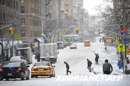 纽约市部分地区26日中午时分积雪厚度超过53厘米,预计降雪还将继续。