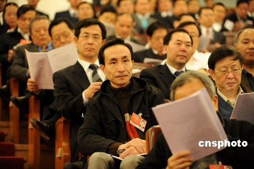 资料图:2009年全国两会期间,演员巩汉林在听会。 中新社发 于润杰 摄