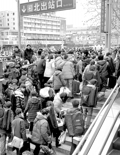 1月21日,旅客们从郑州火车站的地下出站口出站。 新华社记者王颂摄