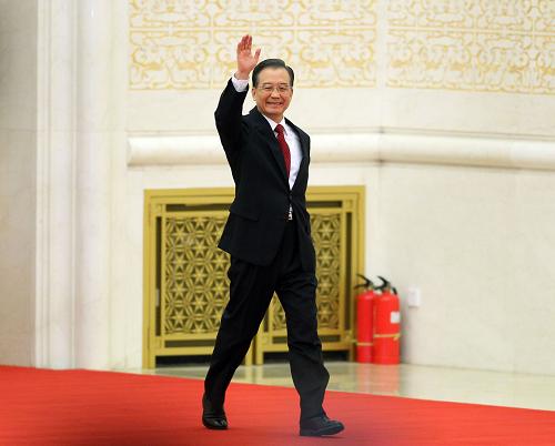 14日上午10时整,十一届全国人大三次会议刚刚闭幕,身着深色西服的温家宝总理面带微笑,健步走入大厅,边走边挥手向中外记者致意。