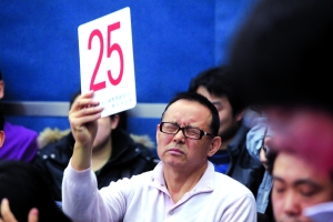 昨日,中国烟草下属中维地产在望京地块拍卖中频频举牌,最终失利。远洋旗下远豪置业历经84轮激烈角逐,以40.8亿元将其收入囊中。周晓东 摄
