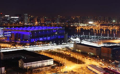 3月21日,上海世博会浦西园区场馆和道路正进行灯光调试。新华社记者 裴鑫 摄