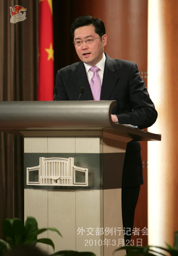 2010年3月23日,外交部发言人秦刚举行例行记者会。答问如下。