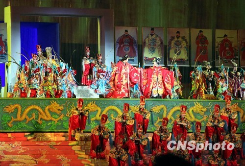 27晚,经大陆著名导演张艺谋重新诠释的意大利歌剧《图兰朵》在台湾台中市的洲际棒球场上演。这是迄今为止大陆与台湾文艺界的最大规模携手合作,也是海峡两岸有史以来最为隆重的文化交流活动。雄伟的场面,强烈的色彩,富丽堂皇的宫殿、华丽无比的服装,张艺谋的台湾版《图兰朵》令人惊艳。 中新社发 闫晓虹 摄
