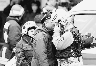 3月29日,在俄罗斯首都莫斯科,救援人员在通报情况。新华社发