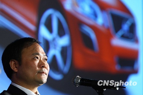 3月30日,吉利集团在北京召开新闻发布会,就沃尔沃收购案接受媒体采访。吉利董事长李书福闭口不谈吉利版沃尔沃制造基地选址情况。 中新社发 富田 摄