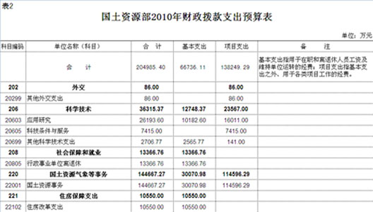 预算表2(来源:国土资源部网站)