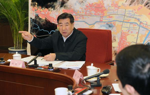 4月21日,中共中央政治局委员、国务院副总理、国务院抗震救灾总指挥部总指挥回良玉在北京主持召开总指挥部第八次全体会议。 新华社记者张铎 摄