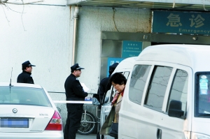 23日下午,警方在怀柔第一人民医院急诊室外拉起警戒线