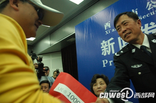 发布会最后,王海玲将公安部门承诺的1万元悬赏金兑现给了为此案提供重要线索的群众。(中新网-西部网)
