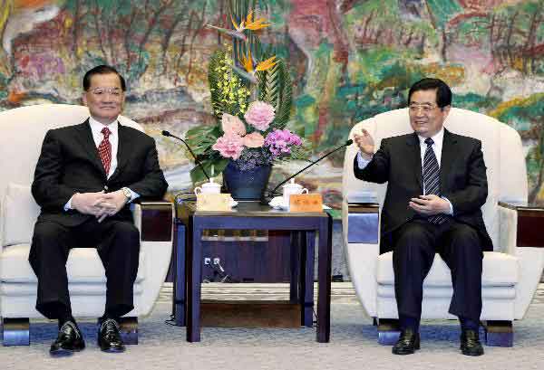 4月29日下午,中共中央总书记胡锦涛在上海会见了中国国民党荣誉主席连战、吴伯雄和亲民党主席宋楚瑜等应邀出席上海世博会开幕式的台湾各界人士。连战在会见中致辞时作上述表示。